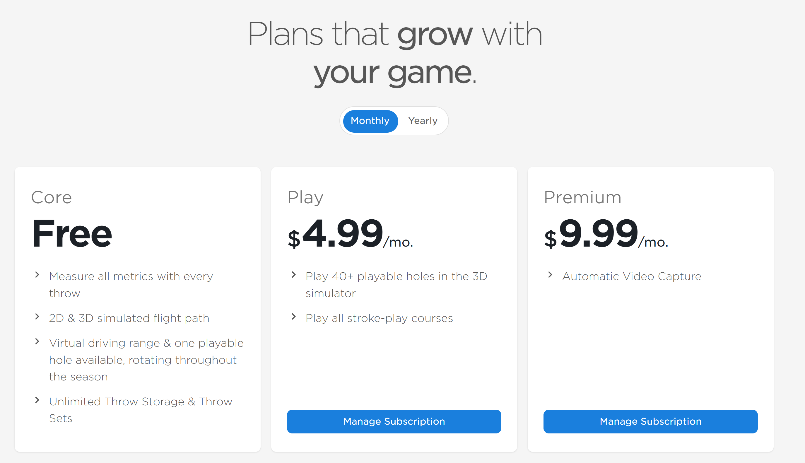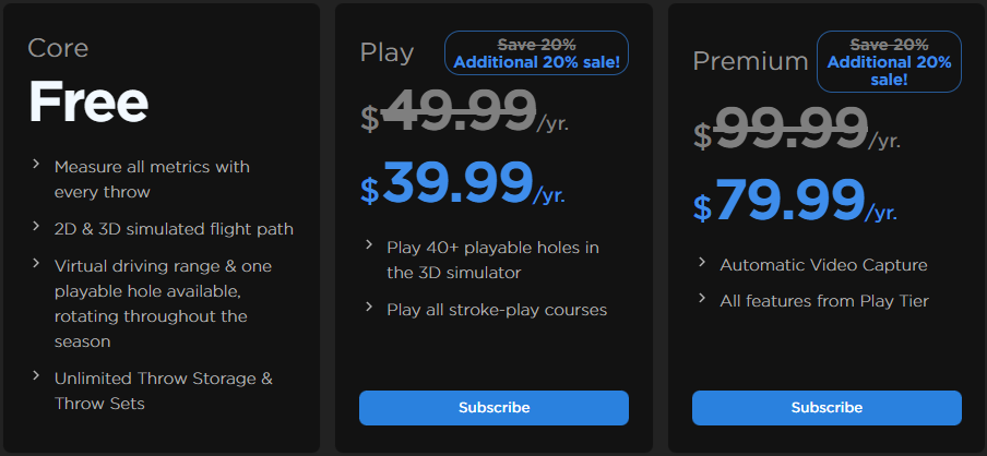 The Premium Subscription includes Automatic Video Capture which is currently available on the iOS and Android mobile apps. Some Android phones limit the framerate options available to the TechDisc app. There is a free 7-day trial available to all new accounts.
