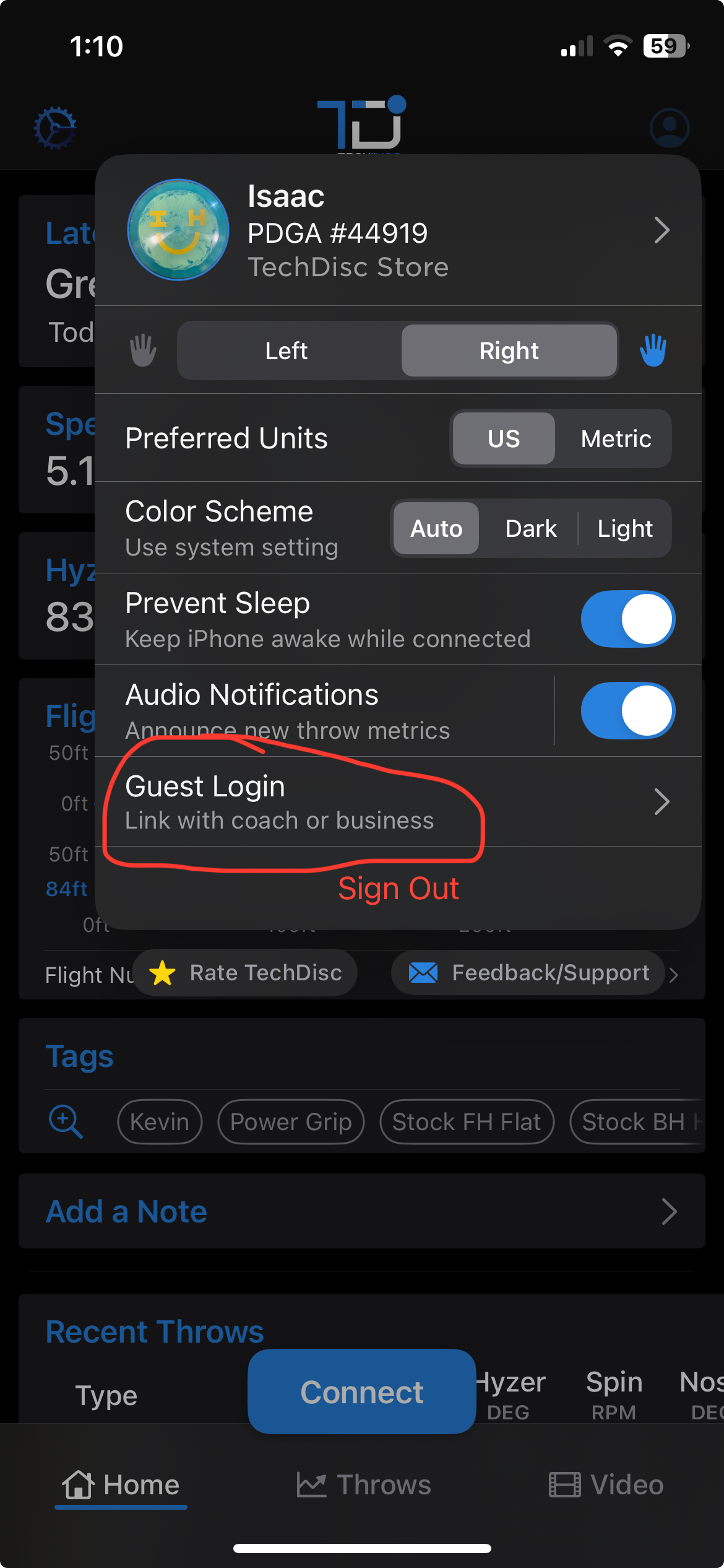 Guest Login is a feature built for businesses on our Commercial Premium Tier. This feature allows guests of businesses with simulators to come in, experience all the benefits of a Premium account, and have all those throws transfers to their own personal TechDisc account.