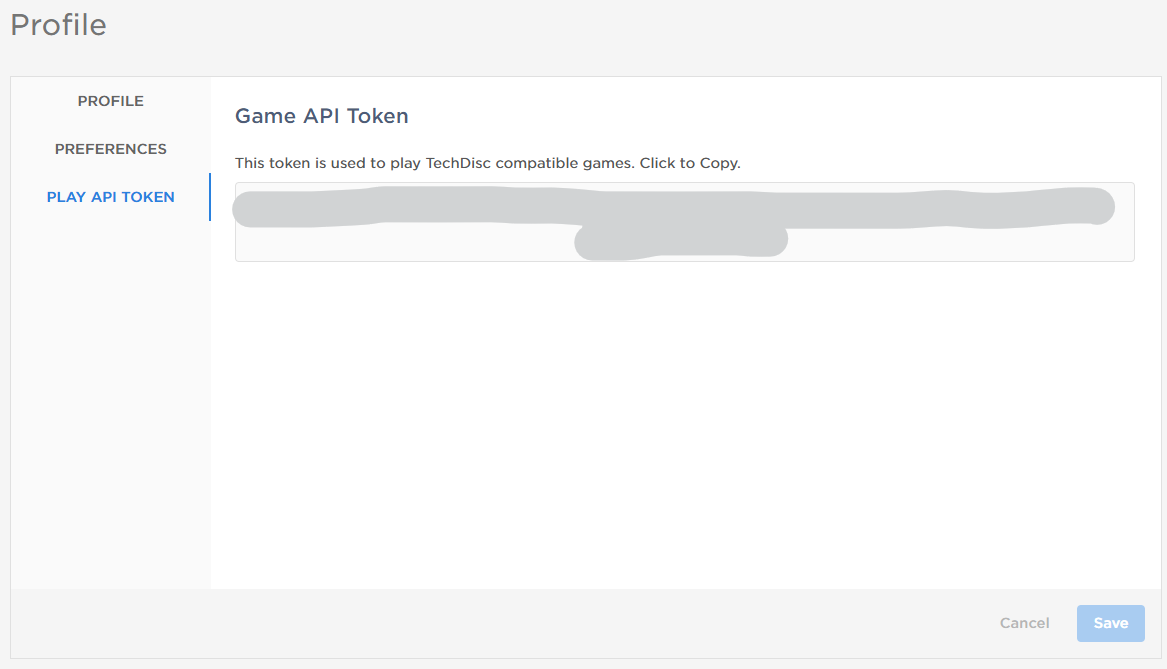 - Select "Play API Token" to access the API Token. Click the key to copy it.